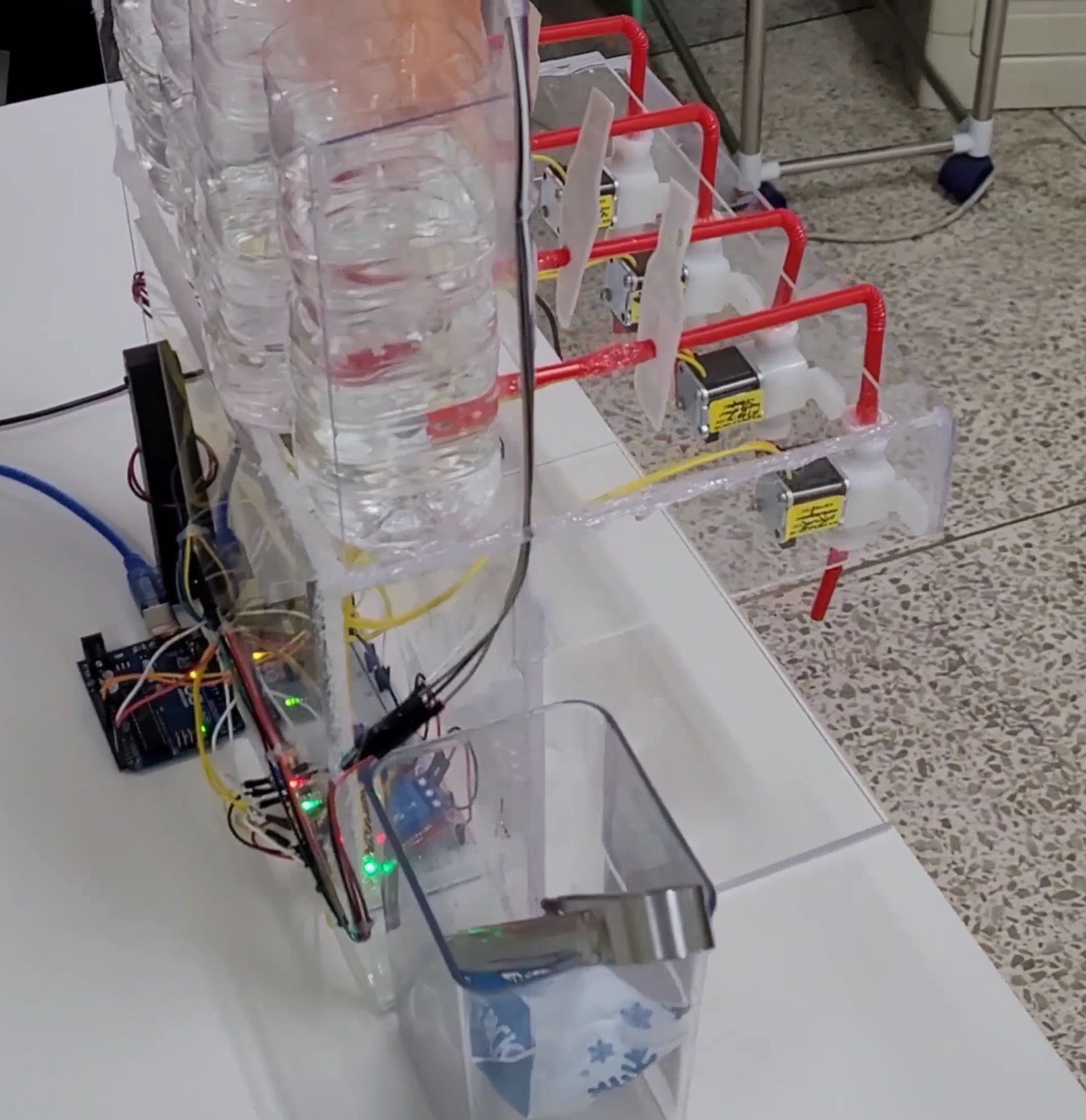 - 낙차 방식 한계 극복 및 속도 개선 - 현재는 음료가 낙차(중력)를 이용해 밸브를 통해 흘러 나오는 방식을 사용하고 있어, 음료 배출 속도가 느린 단점이 있습니다. 향후 펌프를 도입해 이 문제를 해결하고 보다 빠르고 안정적인 음료 분배 시스템을 구현하고 싶습니다.